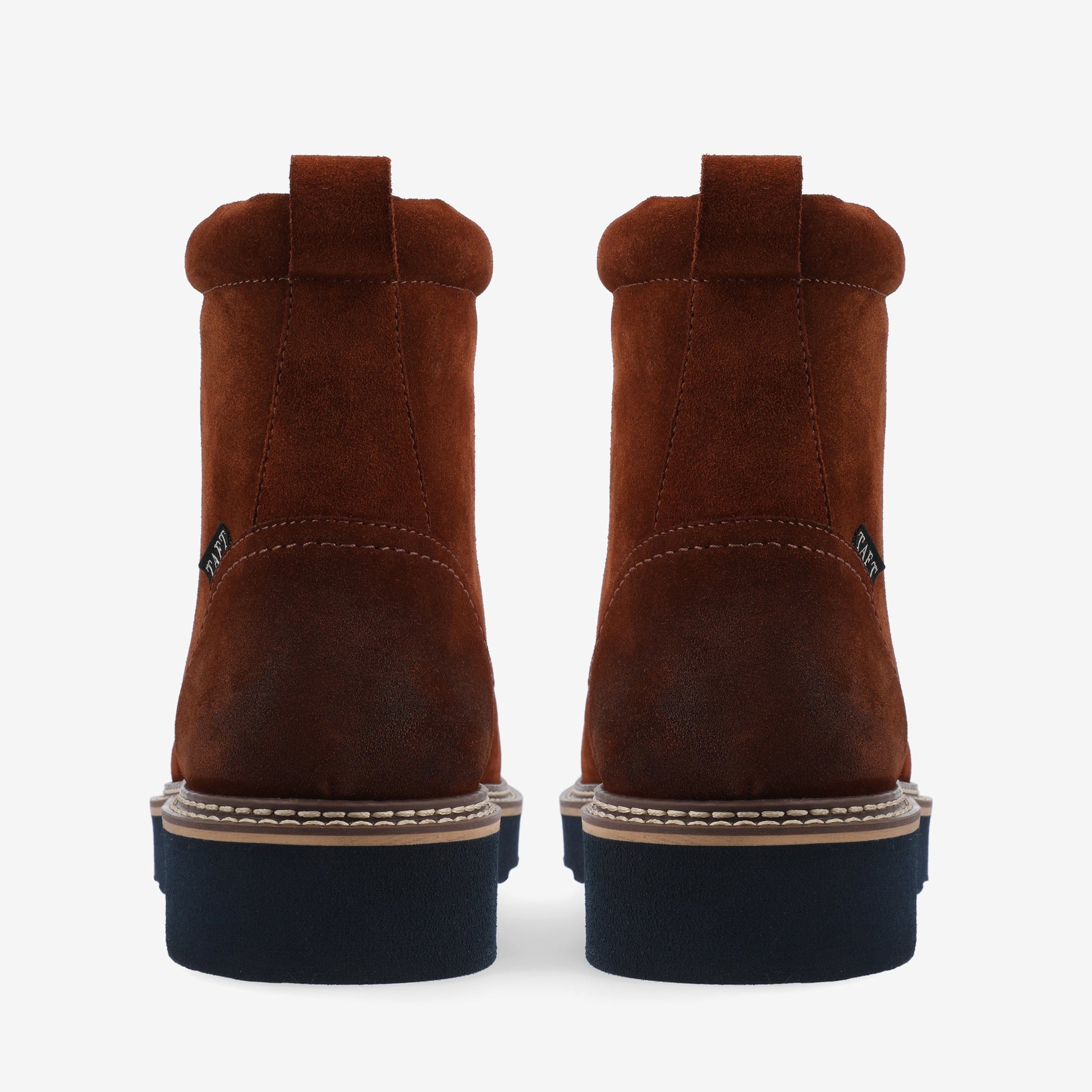The Model 006 boot by Taft 365 is a classic casual lace-up boot perfect for everyday wear. Made in a comfortable suede leather, with matching colored laces and wedge rubber soles.