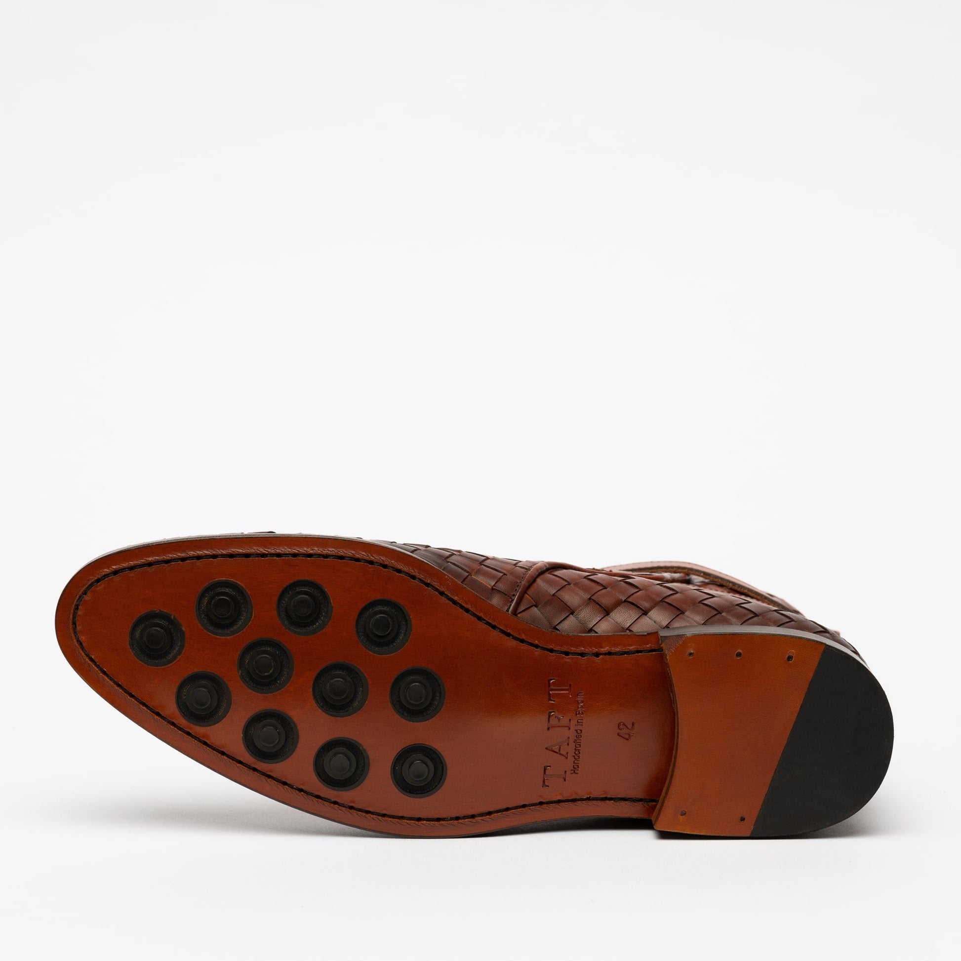 Our Dylan boot in Woven, is a beautiful Jodhpur boot with a very sleek silhouette, ankle strap, and buckle. The leather it has been made out of is carefully hand-woven in Spain and burnished with heat and stain to create that stunning finishing look. Featuring its blake-stitched construction and durable material that will keep your shoes looking good for years. We then use our Bristol last, giving it that very slim, sleek, and minimal shape.