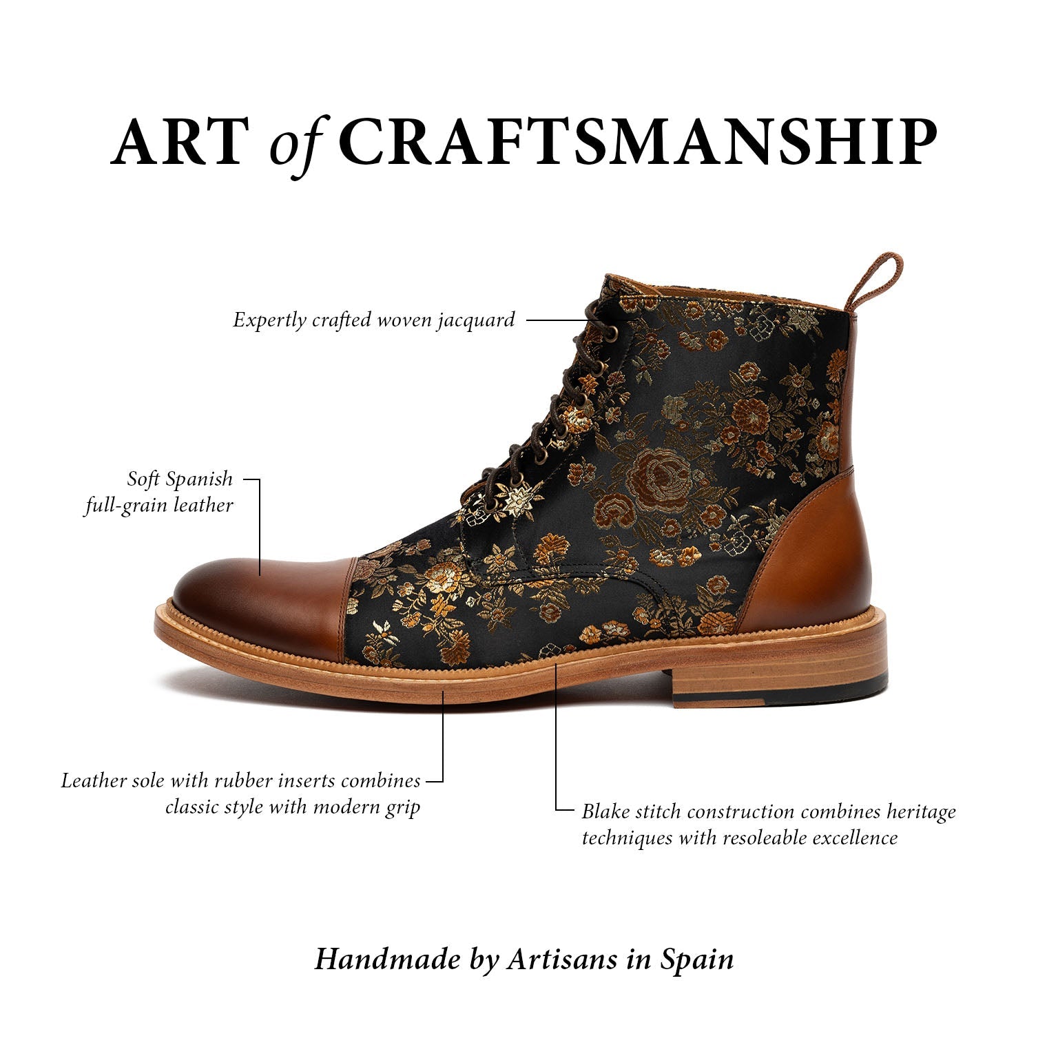 The Jack in Eden is a bold take on TAFT's signature product. This men's boot includes expertly crafted woven cotton jacquard and a durable cap-toe built to last and guaranteed to garner compliments.
