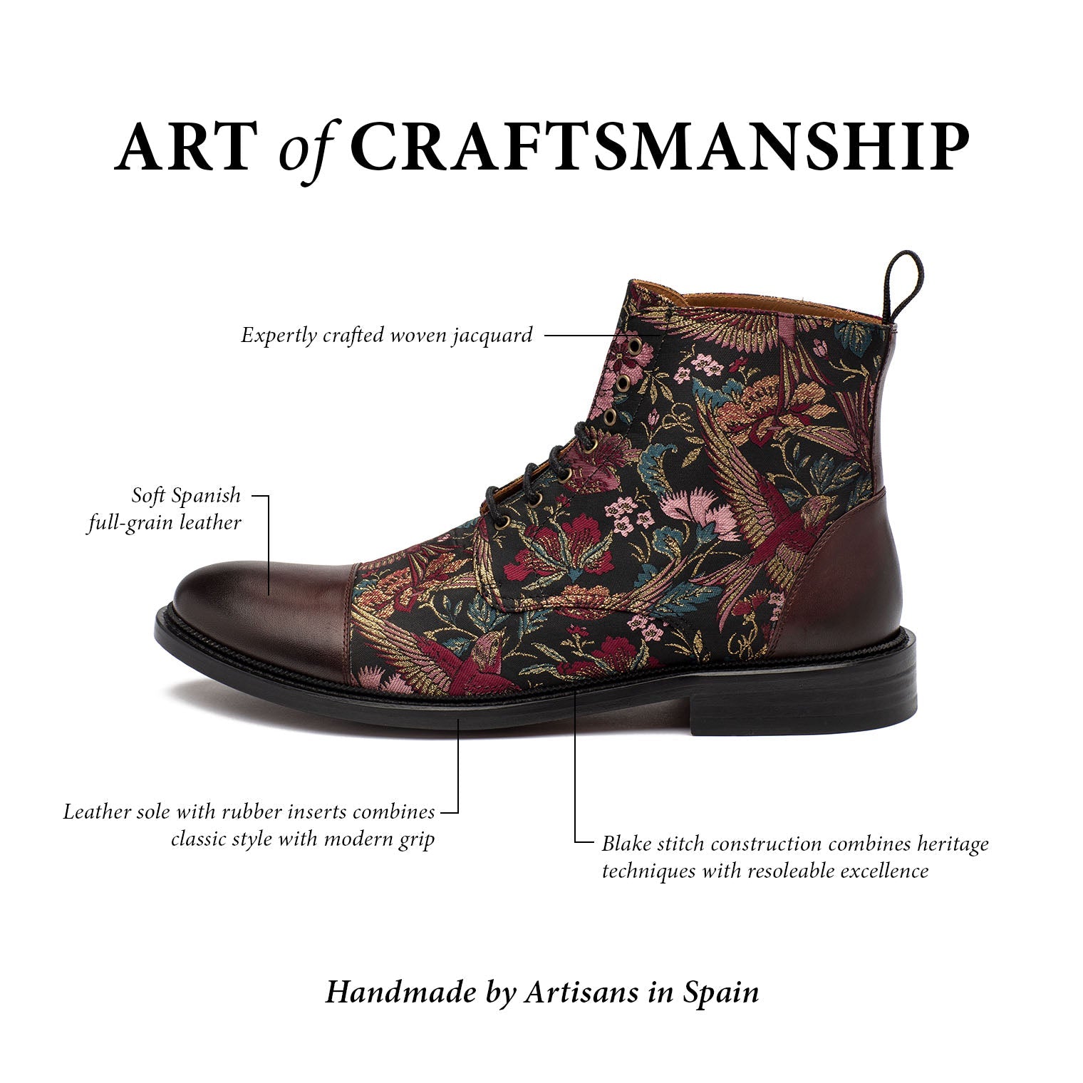 The Jack in Paradise are a stand-out with an exotic “birds of paradise” Jacquard weave in beautiful oxblood tones and rich oxblood leather. They’re built for comfort, designed to last, and guaranteed to get compliments.