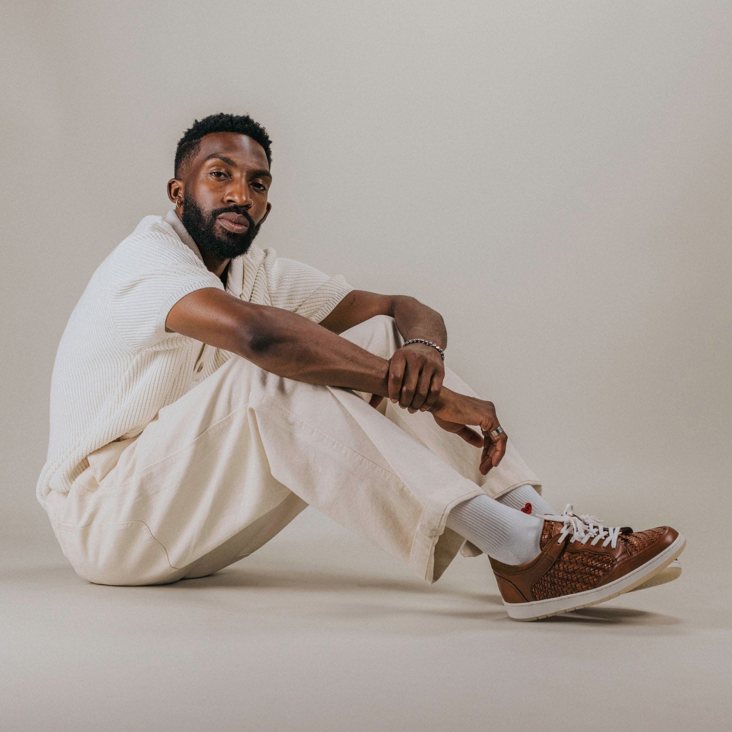 Meet the Rapido Men's Low Sneaker in Brown Woven: a nod to modern craftsmanship. This luxury low sneaker showcases Spanish Calfskin and features a low silhouette inspired by the iconic styles of the 80s.