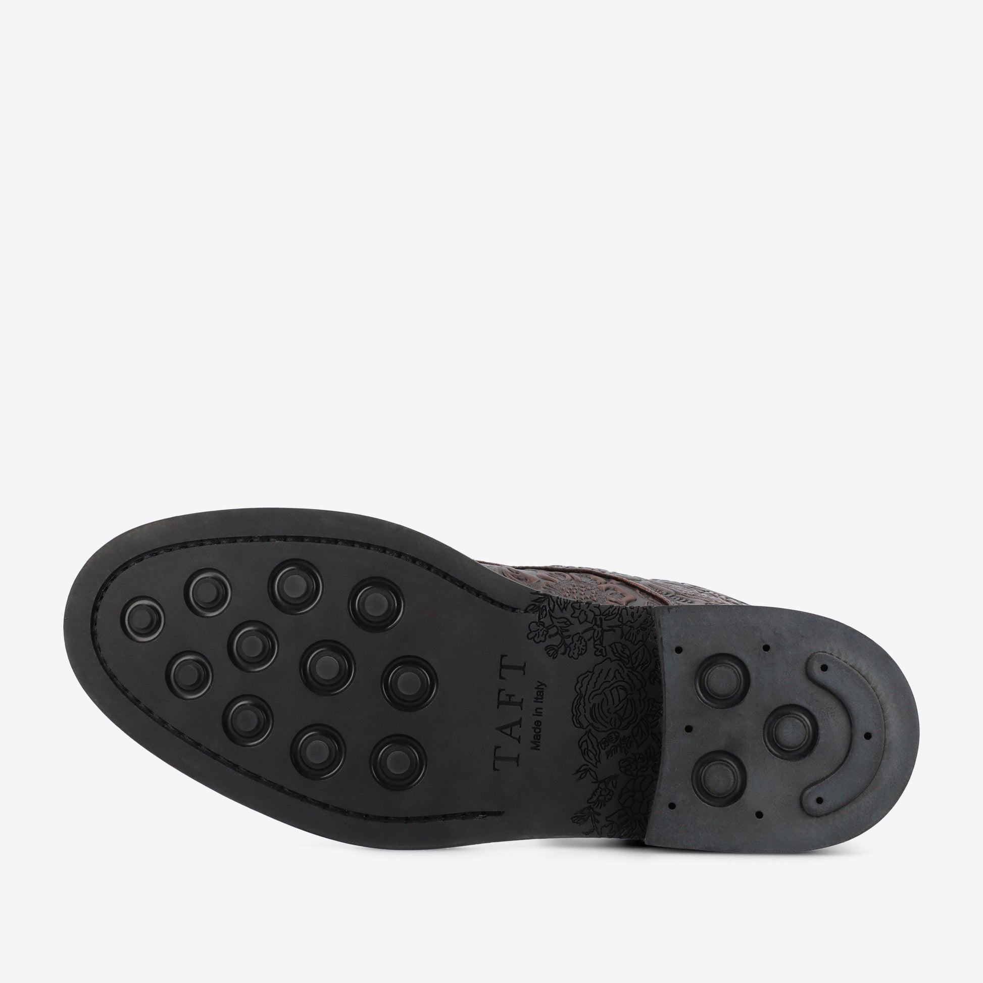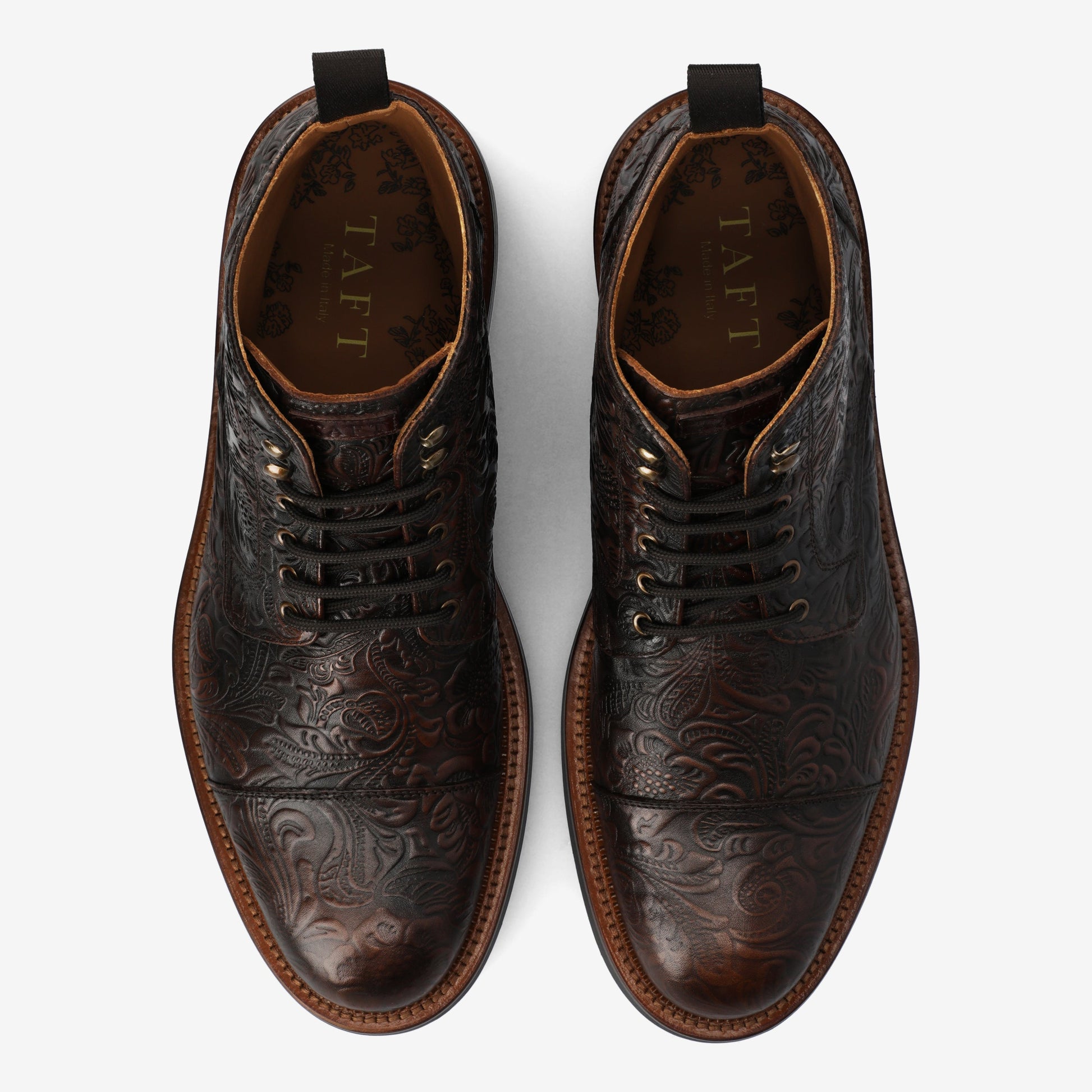 The Rome dress boot by TAFT is a bold statement piece, crafted in Italy with striking prints and designs, including croc print and floral patterns. Made from genuine leather and suede, it features a classic lace-up closure and a sleek silhouette.