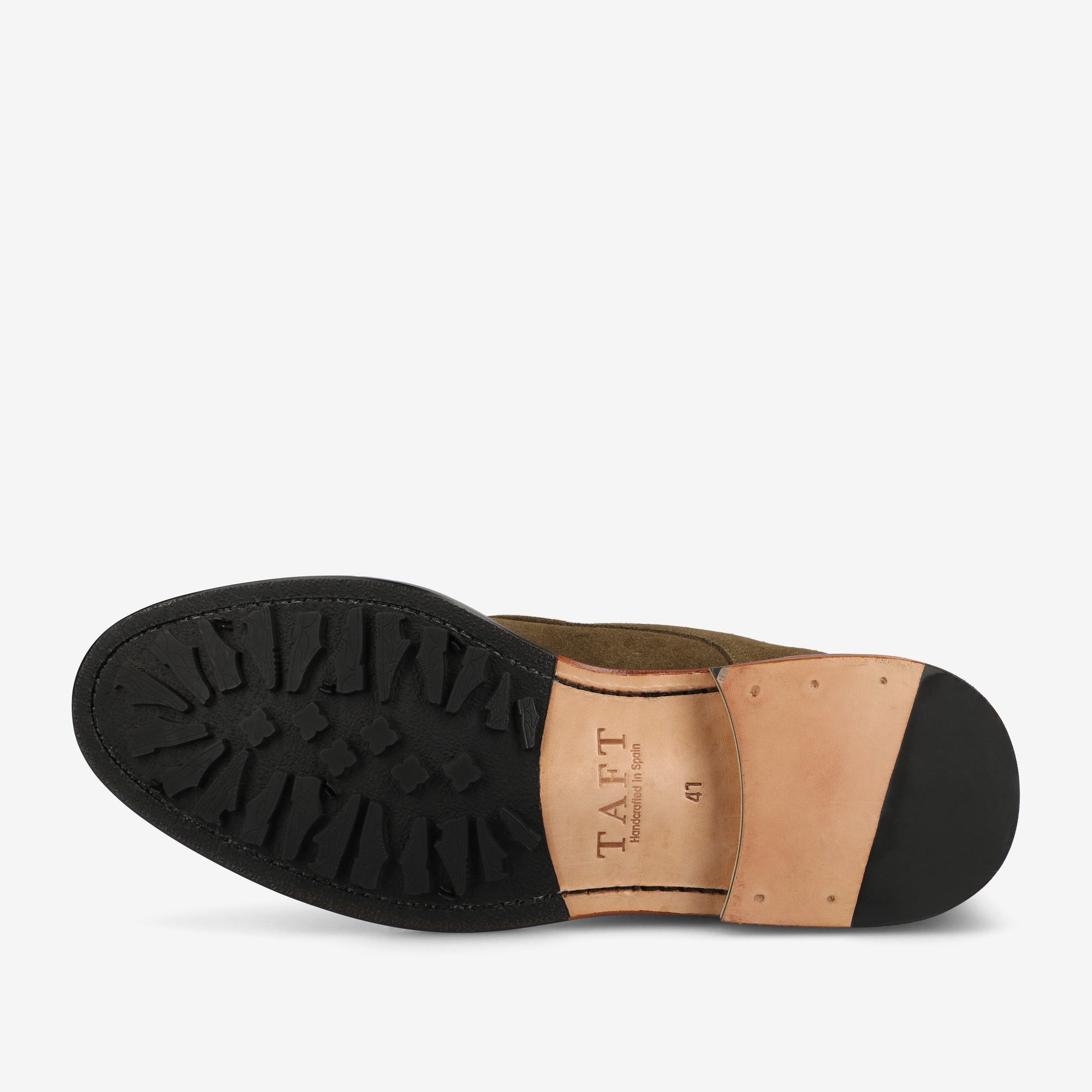 Discover the Troy Boot in Olive, a stunning addition to TAFT's boot lineup. This boot, meticulously crafted from rich Spanish suede in a deep Olive hue, radiates a unique blend of sophistication and contemporary style. The distinctive TAFT "Shoe Dog" rubber sole, along with a stylish braided welt and resoleable Blake Construction, ensures durability and comfort. Ideal for various settings, from formal events to relaxed gatherings, the Troy Boot in Olive exemplifies TAFT's commitment to quality and style.